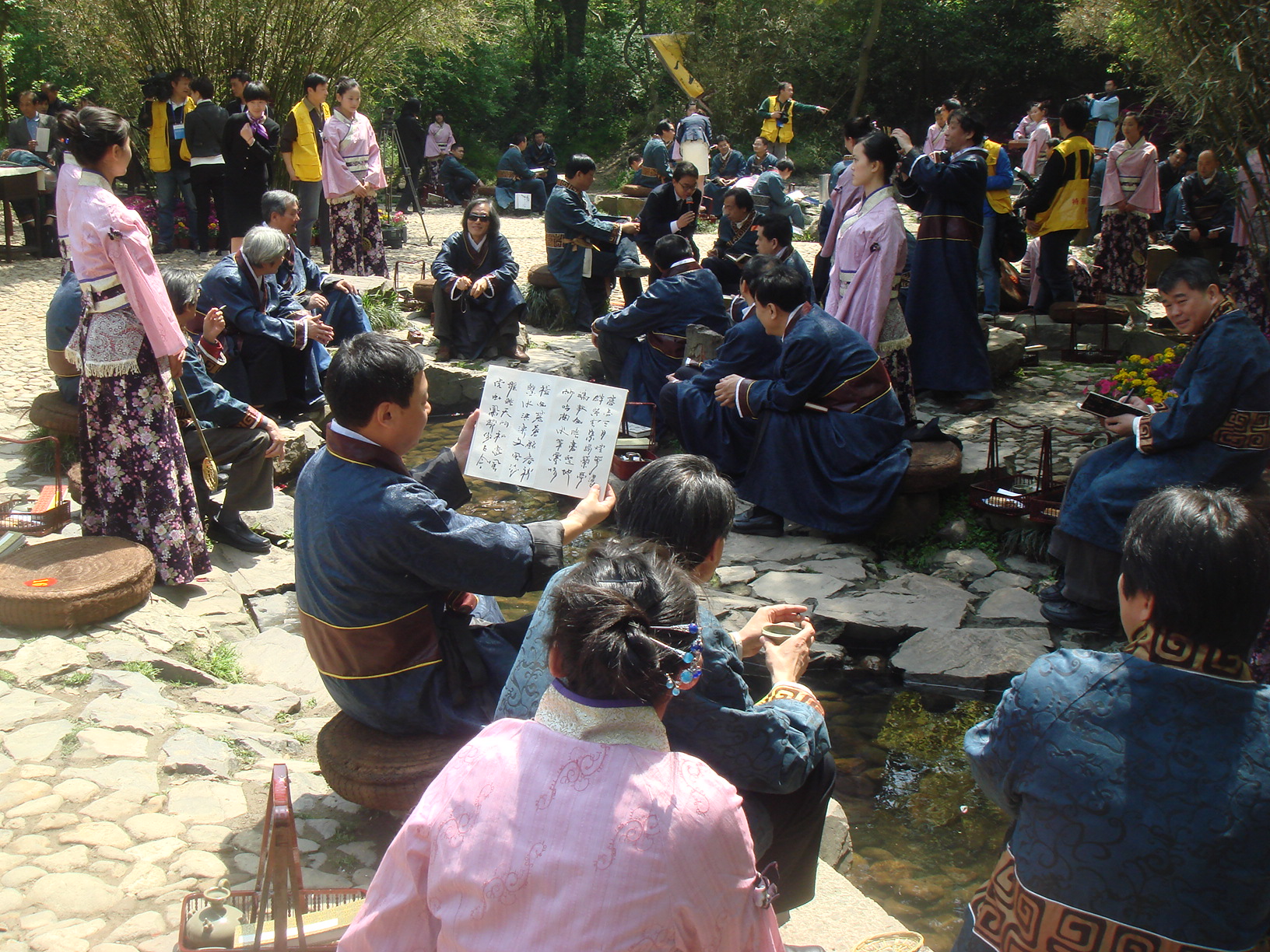 Рис. 1. Праздник поэзии и каллиграфии у Павильона Ланьтин, г. Шаосин, пров. Чжэцзян. Фото Е.Э. ВойтишекРис. 1. Праздник поэзии и каллиграфии у Павильона Ланьтин (г. Шаосин, пров. Чжэцзян), где в 353 г. впервые состоялся грандиозный пир «людей культуры» у изогнутого ручья с поэтическими декламациями и ритуальным винопитием (фото Е.Э. Войтишек; материалы научной командировки в г. Шаосин в апреле 2010 г.).