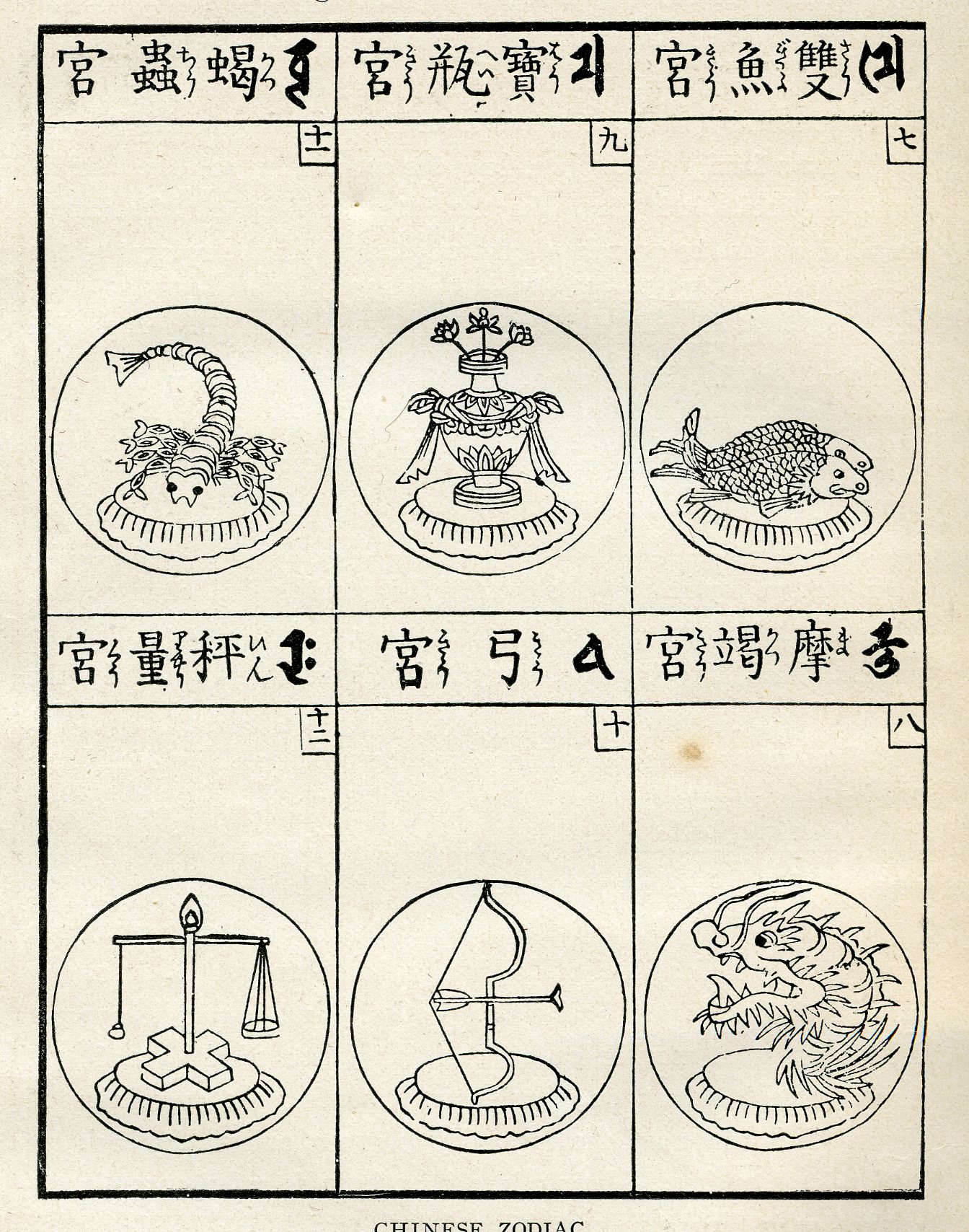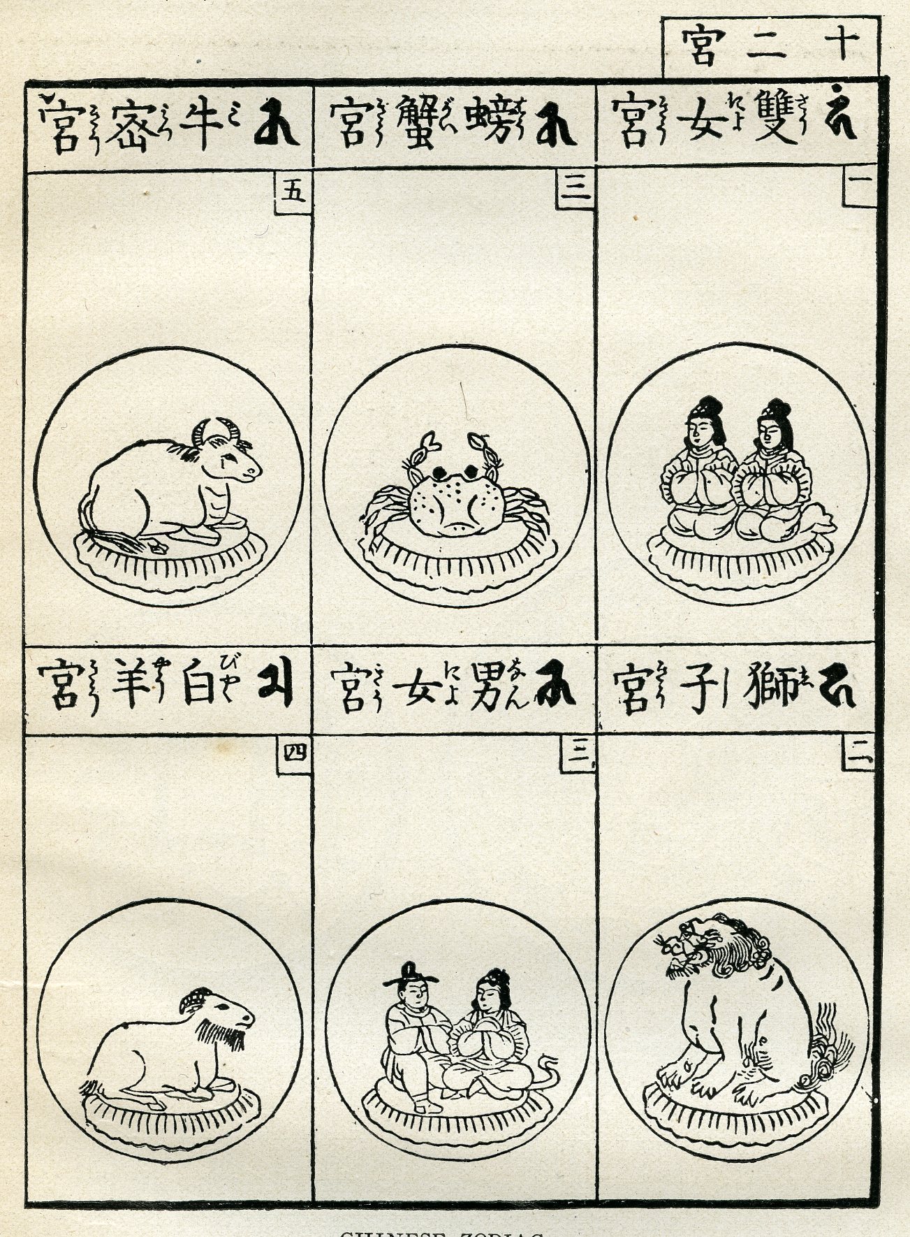 Ван Чун. «Лунь хэн», гл. 14) он идентифицировался с китайским зодиакальным циклом 12 животных (мышь, бык, тигр, заяц, дракон, змея, лошадь, баран, обезьяна, курица, собака, свинья), который, как и египетский вариант позднеримской эпохи (кот, шакал, змея, скарабей, осел, лев, козел, бык, сокол, бабуин, ибис, крокодил), точно соответствует исходному смыслу греческого термина «зодиак» («звериный круг»), в отличие от западного зодиака, включающего в себя символы не только животных.