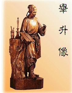 畢升, Би ШэнБи Шэнок. 1012 – ок. 1068. Изобретатель наборного (подвижного) шрифта, к-рый он начал использовать приблизительно в 1040-х. Информация о его жизни скудна и исходит гл. обр. из «Мэнси би тань» («Записки из Мэнси», гл. 307) Шэнь Ко. Согласно этому тексту, Би Шэн нашел полное решение гл. полиграфических проблем: изготовление, компоновка и раскомпоновка литер многократного употребления. Однако предложенный им способ книгопечатания имел недостатки, связанные с непрочностью глиняных литер, к-рые к тому же были малопригодны для воссоздания всех нюансов китайской каллиграфии.