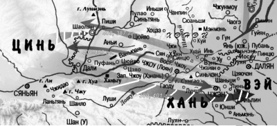 В 236 г. до н.э. Цинь мобилизовало большое войско для захвата долины Фэньхэ. Одна армия дошла до Е (крайняя северная точка вэйских земель в среднем течении притока р. Хуанхэ – р. Чжаншуй), а другая достигла области Тайюань (чжаоская территория в верховьях р. Фэньшуй на границе с Вэй), охватив практически всю территорию Вэй [1, гл. 6, с. 231; 2, т. 2, с. 57].