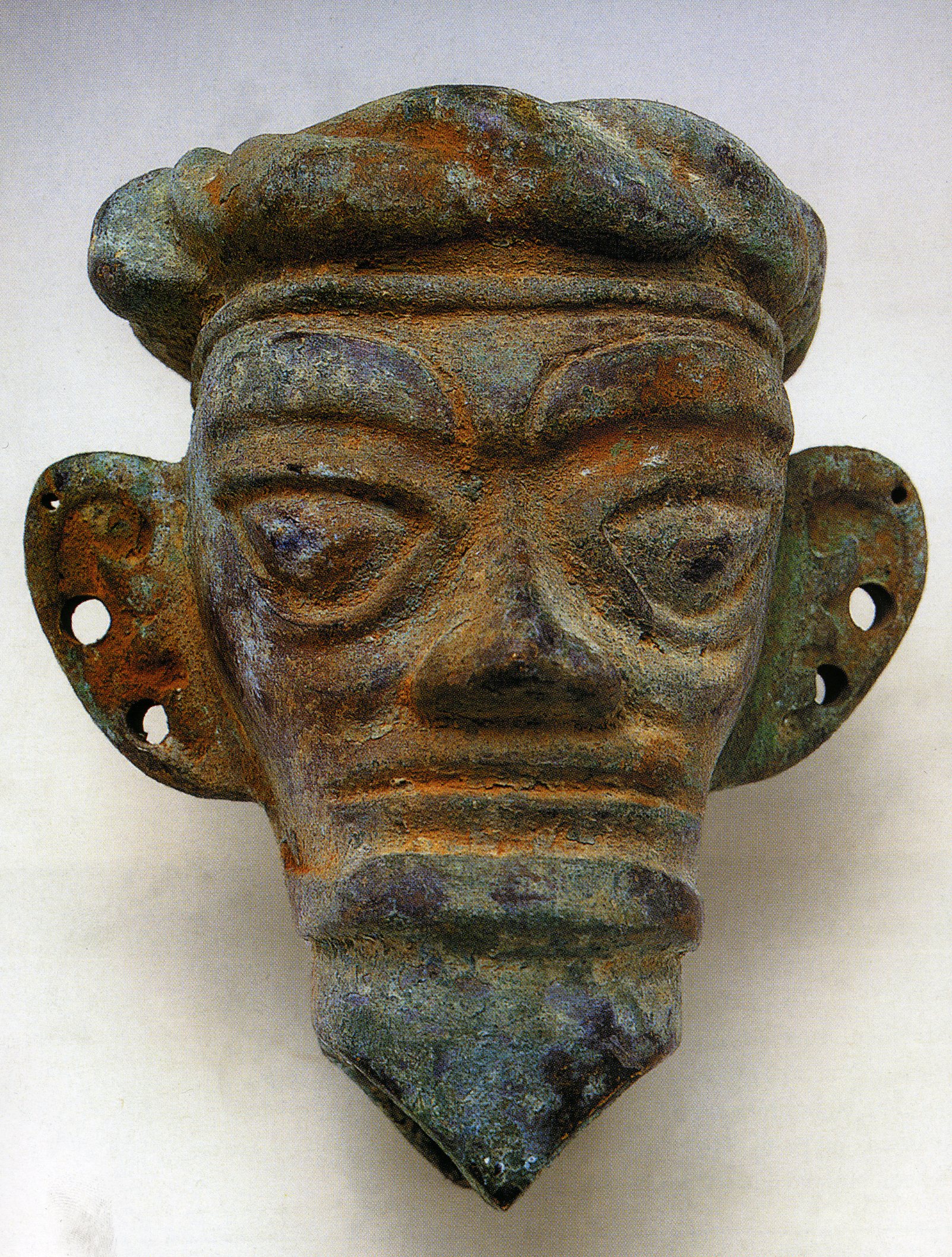 Саньсиндуй 三星堆 (пров. Сычуань). Археологические материалы, относящиеся к иньскому государству и чжоуской эпохе, не содержат свидетельств существования искомой традиции в собственно китайском искусстве. Представленная в них чжоуская бронзовая пластика, сводится, во-первых, к специфическим маскам, которые вывешивались на стенах погребальной камеры. Самими ранними являются две маски X в. до н.э. (21×21,6 см и 18,3×18,3 см), обнаруженные в погребении в окрестностях Пекина.