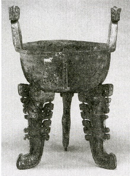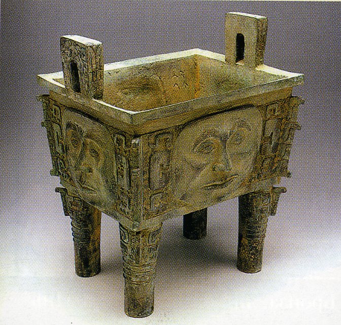 Эрлиган 二里岡, бывшем, возможно, первой столицей иньского государства, — разнообразные по категориям предметы кухонной и столовой утвари, некоторые из них имели внушительные размеры (до метра в высоту). Пройдя несколько эволюционных этапов, бронзовое литье иньцев достигло наивысшего расцвета в XII–XI вв. до н.э., когда окончательно определились его технологический цикл и способы декора изделий.