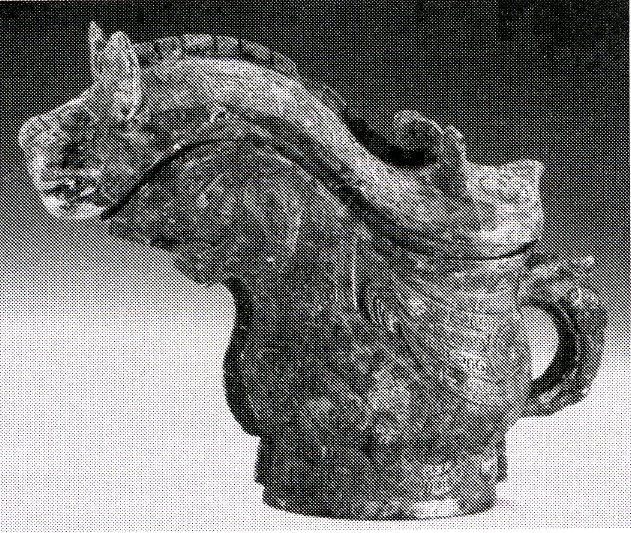 Лоян 洛陽, пров. Хэнань), были обнаружены остатки бронзолитейных мастерских и готовые вещи. Среди них — оружие, около 20 сосудов и подвески, инкрустированные бирюзой (14×10 см).