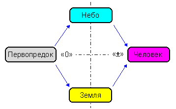 чжун), которая, опосредуя противоположности, помогает перейти от двоицы к троице, задавая, тем самым, ряд классификационных «троиц», самая значимая из которых – «Небо, Человек, Земля» (