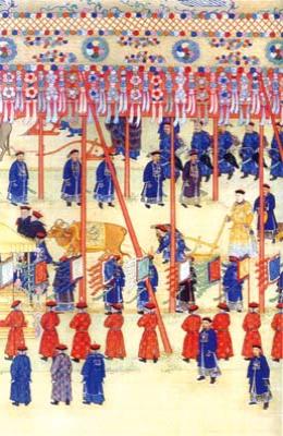 Куан Хэн). На протяжении эпохи Шести династий (Лю-чао, 220–589), этот ритуал также исполнялся эпизодически: в царстве Вэй (220–265) периода Троецарствие (Сань-го, 220–280), единожды при империи Западная Цзинь (265–311). Частота его исполнения заметно возросла при южных династиях, когда кит. государственность переместилась в регион Янцзы после частичного завоевания (311–317) страны некит. народностями (сев. династии). Императором