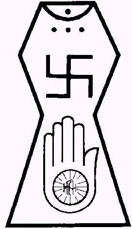 Культ и символика. Не все школы и секты джайнизма поклоняются образам тиртханкаров и проводят религиозные церемонии в храмах. Но основная масса адептов, в особенности монахи, выполняют определенные ритуалы, среди которых есть домашние обряды и храмовые. К первым относятся обязательное утреннее (ок. 4-х часов утра) чтение мантр, сопровождаемое процедурой ритуального омовения, медитацией и чтением соответствующих текстов и вечерняя медитация с произнесением мантр. Монахи и монахини помимо этих обрядов обязаны в 10 утра отправляться на сбор милостыни, поскольку они должны питаться только подаянием. Ежедневные «обязанности» (авашьяка) каждого джайна, в первую очередь монаха, включают в себя 6 ритуалов: «спокойствие» (самата), прославление (става), восхваление (вандана), раскаяние (пратикрамана), отречение (пратьякхьяна) и отвержение от тела (утсарга), внешне выражающиеся в пении гимнов 24 тиртханкарам, произнесении мантр и признании перед главой или наставником общины своих ошибок и прегрешений. Монахам и монахиням предписано находится в одном городе не более 3-х дней, а в селении – не более 1 дня, но в сезон дождей они должны жить в одном месте, поскольку это период размножения всего живого. Странствующий монах может ненароком причинить вред бесчисленным насекомым. Храмовая служба у джайнов довольно проста: примерно в 6.30, 10.30 утра и вечером храмовый служитель (пуджари), после совершения омовения, открывает храм и, входя, произносит «ниссахи» (букв.: «я отказался от мира»). В его обязанности входит наведение порядка в помещении, окрашивание пастой образов и изображений тиртханкаров, зажигание ламп и воскурений, совершение подношений (цветами, рисом, благовониями, сладостями и т.д.) перед свастикой и тиртханкарами. Службы также включают в себя пение гимнов и чтение мантр, при этом и пуджари и верующие сидят на полу на ковриках. После окончания службы пуджари звонит в колокол и произносит: «ависсахи» («я возвращаюсь в мир»), покидая храм. Как правило, пуджари джайнских храмов сами не являются приверженцами учения Махавиры, в качестве храмовых служителей джайны приглашают брахманов-индусов (обычно вишнуитского толка), поскольку служба связана с зажиганием огня, т.е. с насилием, что категорически запрещено самим джайнам. Для дигамбаров крайне важна церемония махамастабхишека, проводимая раз в 12 лет (последняя была в феврале 2006 г.) и состоящая в поливании статуи Бахубали (Гомматешвара) на горе Гомматагири в Шраванабелголе (Карнатака) смесью из молока, простокваши и меда. Джайнские центры паломничества располагаются на всей территории Индии, но наиболее значимыми являются место рождения Махавиры ок. Патны (северный Бихар); храмовые комплексы из мрамора на горе Абу (Раджастхан), Гирнар и в Шатрунджае (Гуджарат); статуя Бахубали, храмы и на горах Гомматагири и Чандрагири в Шраванабелголе. Среди объектов почитания в джайнизме встречаются падуки – каменные «отпечатки/следы» стоп почитаемых наставников и учителей. В иконографии джайнизма используется восемь благих символов (аштамангала): свастика, шриватса, нандьяварта, вардхаманака, бхадрасана, калаша, минаюгала и дарпана. Джайнская символикаСвастика - самый характерный и наиболее значимый для джайнизма символ, четыре сегмента которого обозначают четыре благих удела души: бог, человек, живо