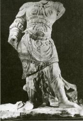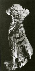 Сохранилась, например, метровая статуя Локапалы (божественного «стража мира»), представленная сейчас в экспозиции Шэньсийского провинциального музея (г. Сиань), несмотря на серьезные утраты (не сохранились голова и руки), она поражает уровнем художественного мастерства. В манере исполнения, передающей естественность позы, подчеркнутую изящным изгибом правильного по своему строению человеческого тела, сквозит откровенное любование натурой, что напоминает античную скульптуру.<strong> </strong><em>Шэньсийская художественная школа: мраморная статуя Локапалы</em> Шэньсийская художественная школа: мраморная статуя Локапалы