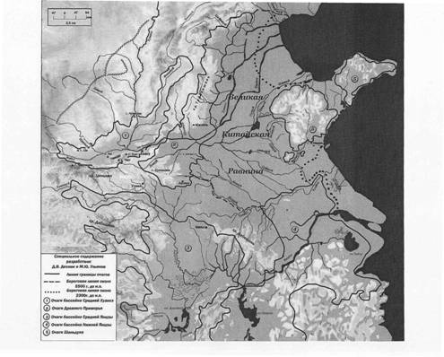 3. «Шаньдун» – до рубежа III–II тыс. до н.э. это группа островов, отделённых от Древнего Приморья сначала Древним Проливом, а затем – «Болотом» (широкой полосой низинных и заболоченных земель). Шаньдун развивался в значительной степени обособленно; по облику и по связям он ближе к Нижней Янцзы, чем к Древнему Приморью;
