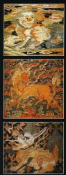 цзян-лун 降龍), в полете сверху вниз, воплощает приход к власти нового государя. Последние две композиции соседствуют в пределах одного элемента костюма, либо изображаются на его парных частях, например, рукавах, обозначая понятие о непрерывности верховной власти.