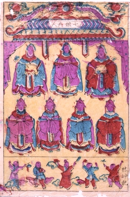 няньхуа, находящихся в провинции Фуцзянь (города Чжанчжоу и Цюаньчжоу), и ведущего тайваньского центра в городе Тайнань нам встретились бумажные иконы с изображением семи матушек-покровительниц детей ещё с одним именем –