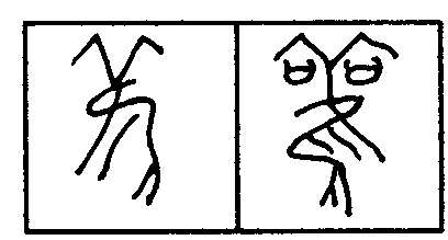 хай, в котором верхняя часть представляет собой пиктографическое изображение «рогатой» птицы, напоминающее знак