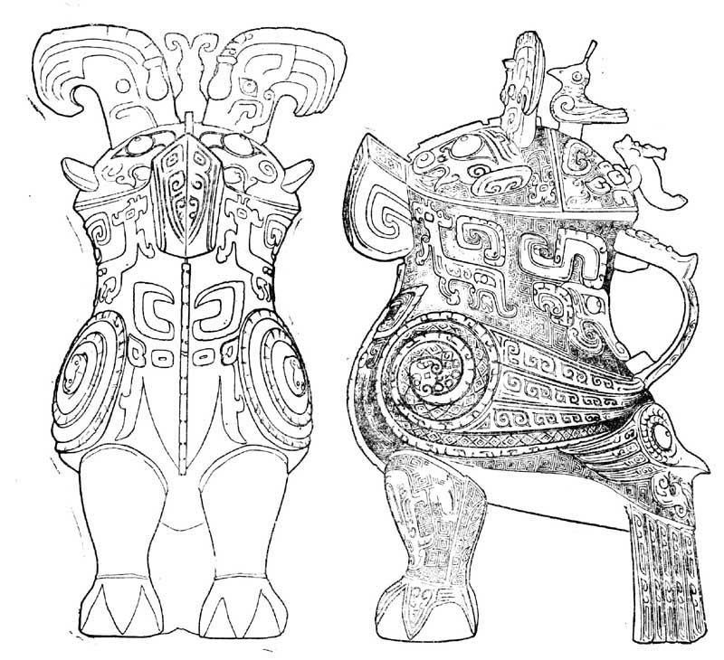 В ритуальном искусстве Шан-Инь преобладают образы животных, происхождение которых восходит к тотемическим представлениям; согласно письменным источникам, многие легендарные правители Китая имели черты животных, или же их происхождение связывалось с животными; потому в изображениях животных на ритуальной утвари можно видеть персонажи эпохи сложения мифов.