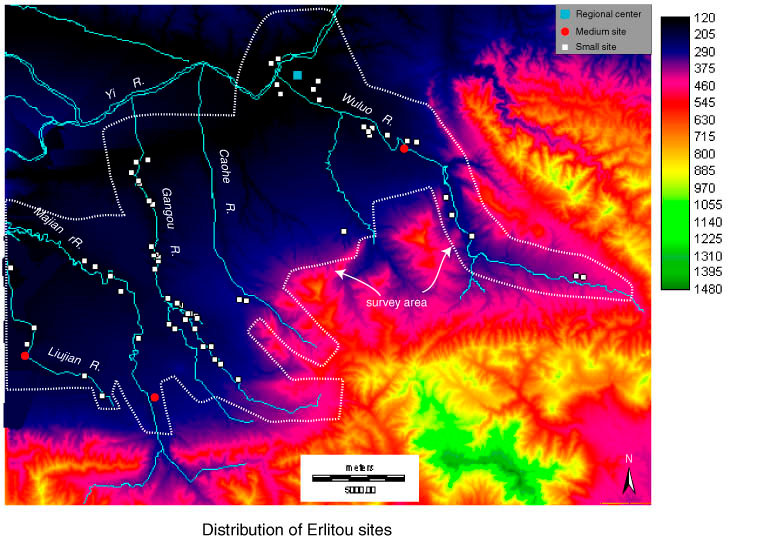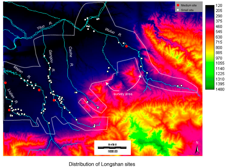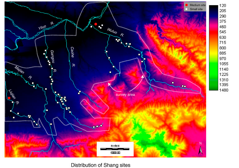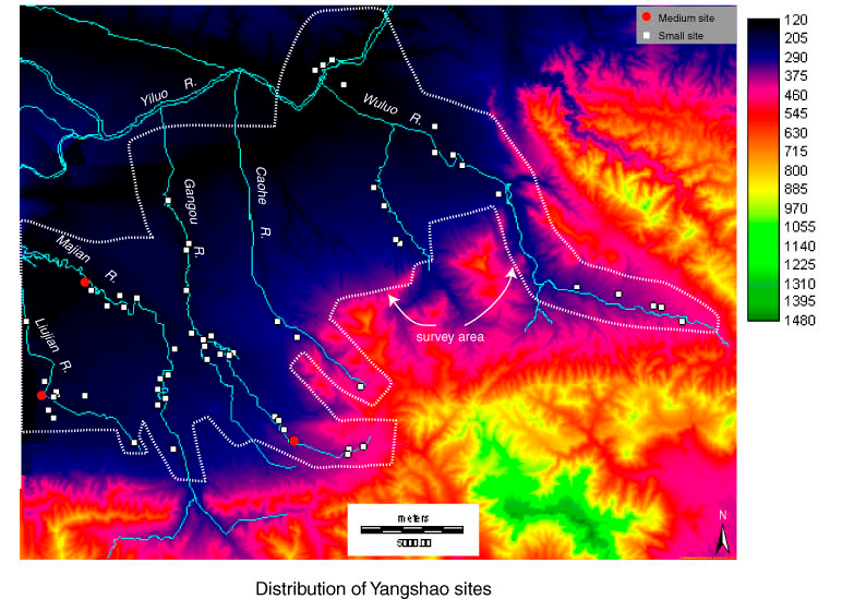 Поскольку одной из важнейших целей исследования являлось уточнение путей возникновения и структуры расположения и функционирования поселений в составе ранних государств, большое внимание уделялось выявлению и картированию останков древних поселений, определению их площади. Результаты съёмки вносились в геоинформационную систему, что позволило создать карты распределения поселений по культурам (Яншао, Луншань, Эрлитоу, Шан и Чжоу; см.
