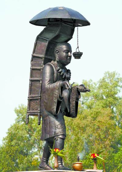 Памятник Сюань-цзануЧэнь Хуй, прозвище Сань-цзан фа-ши (Наставник Трипитаки), Тан-сэн (Танский монах). 600 (или 602), Гоуши округа Лочжоу (совр. Гоушичжэнь округа Яньши пров. Хэнань), — 664. Буддийский наставник высшего ранга, проповедник, переводчик буддийских текстов на кит. яз., один из основоположников школы