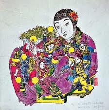 Отрицая возможность прямого заимствования образов Минь Ци-цзи мастерам из Фудина, попробуем предложить иную трактовку причин появления столь необычной композиции на фудинских народных картинках. В первые десятилетия прошлого века стали очень популярны календари с изображением красавиц. В огромных количествах они печатались в Шанхае и Пекине, многие считают, что именно эта продукция и погубила традиционную народную гравюру. Мастера из Фудина явно подражали стилю календарей с красавицами. Кроме того, фудинские театральные картинки отражают социальные изменения в обществе. В старом Китае дамы в театр в городах, как правило, не ходили, женщины стали спокойно появляться в общественных местах и получили возможность реально смотреть пьесы лишь на рубеже веков. Почему именно фудинским художникам оказалось столь необходимо запечатлеть сошедших с новомодных календарей театралок, что они изобрели для этого редкостную и причудливую композицию, не ясно, но результат оказался интересен.