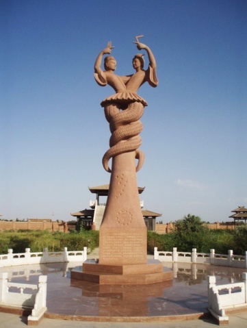 Нюй-ва, к-рая, видимо, с этого времени (возможно, под влиянием мифологии южных племен) стала считаться его сестрой и одновременно женой. Однако в неофициальных апокрифических сочинениях того времени сохраняются реликты его более древнего птичьего облика.