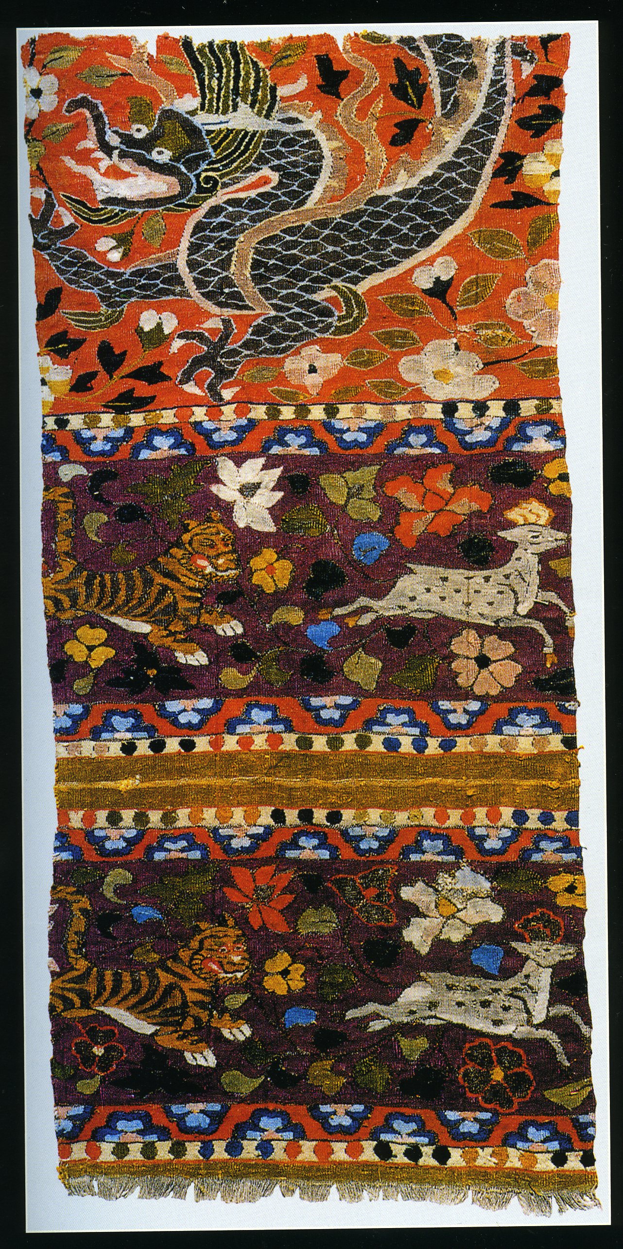 Пик популярности полихромных шелков с заимствованными орнаментами пришелся на VII — начало VIII в., затем их удельный вес стал снижаться в пользу тканей с растительным орнаментом, что означало возвращение шелкоткачества к национальным художественным традициям.