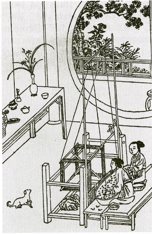 Основные этапы истории развития шелкоткачества. Принято считать, что все основные операции китайского шелкоткачества окончательно сложились во второй половине I тысячелетия до н.э. Однако его история восходит к значительно более древним временам, напоминания о чем сохранились в китайских легендах, в которых происхождение шелкоткачества, как правило, связывается с образом богини Лэй-цзу 雷祖, супруги Хуан-ди 黃帝 — Желтого императора, мифического родоначальника китайского этноса и основоположника китайской государственности. Известно, что культ Лэй-цзу как покровительницы шелкоткачества действительно существовал в Древнем Китае. Прослеживаемый со второй половины эпохи Чжоу (XI–III в. до н.э.), т.е. приблизительно с середины I тыс. до н.э., он входил в круг официальных культов и сопровождался специальными жертвоприношениями, которые исполнялись лично государынями.