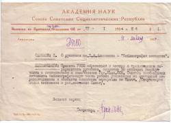 Выписка из протоколаВыписка из протокола заседания Редколлегии Отделения общественных наук АН СССР от 27.01.1934.