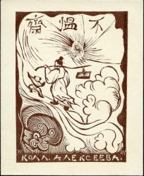 Выгравированный Ю.К. Щуцким экслибрис В.М. АлексееваВыгравированный Ю.К. Щуцким экслибрис В.М. Алексеева с изображением одинокого учёного и иероглифической надписью