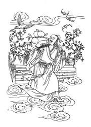 東方朔, Дунфан ШоДунфан Шов китайской народной мифологии даосский святой и бог, покровитель золотых и серебряных дел мастеров. В основе образа Дунфан Шо реальный сановник Дунфан Шо императора Хань У-ди, живший во II–I вв. до н.э. и прославившийся как истолкователь чудес. Согласно даос. житиям, мать Дунфан Шо умерла на третий день после его рождения, а отец бросил его на дороге. Младенца на рассвете подобрала соседка (отсюда его фамилия Дунфан – «Восток»). Дунфан Шо уже в детстве творил чудеса: побывал в столице мрака (Юду), мчался верхом на тигре, повесил на дерево полоску материи, к-рая превратилась в дракона, встречался с Си-ван-му (Владычица запада) и т.п. Затем Дунфан Шо стал сановником У-ди, к-рый беседовал с ним о достижении бессмертия и различных знамениях. Дунфан Шо не раз дарил государю чудесные диковины: звучащее дерево о десяти ветвях, волшебного скакуна, к-рый некогда возил колесницу Си-ван-му, разноцветную росу (по даос. представлениям, роса — напиток бессмертных) и т.п. Однажды с неба спустился Цин-лун (Зеленый дракон), хранитель востока, Дунфан Шо сел на него и поднялся на небеса. Тогда государь понял, что Дунфан Шо — сошедшее на землю божество звезды Цзинь-син (Золотая звезда/Венера), по другим версиям планета Суй-син (Юпитер). В средние века мастера, изготовлявшие изделия из золота и серебра, почитали Дунфан Шо как своего божественного патрона. Существует легенда о том, что Дунфан Шо похитил у Си-ван-му волшебный персик, дарующий бессмертие, и за это был изгнан на какое-то время с небес на землю.