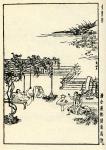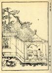 1-я илл. к гл. 27. Ли Пин-эр предается частной беседе в Зимородковом павильонеВ отличие от цзиньлинской школы, продолжавшей в известной мере традиции ранних книжных иллюстраций с их прекрасной "наивной" простотой, хуэйчжоуские мастера создали совсем иную манеру книжной гравюры. Дело в том, что в Хуэйчжоу, бывшем в XVI в. крупным торговым центром, издавна делали бумагу и изготовляли тушь. У китайцев тушь и сейчас продается не в разведенном виде, а в плитках, обычно украшенных узором или каллиграфической надписью. В те далекие времена плитки туши украшались тончайшим рисунком. Делалось это так: мастера-граверы изготовляли специальные деревянные формочки с углубленным орнаментом-рисунком и заполняли их особой массой, которая, застыв, принимала очертания нанесенного на ней рисунка. Такой рисунок всегда исполнялся тончайшими линиями, отсюда и тончайшие главные линии хуэйчжоуской гравюры-иллюстрации, поскольку она родилась на базе именно этого искусства деревянных форм для туши (а отчасти и вырезывания печатей, где тоже требовалась тонкая, филигранная работа). Недалеко от г. Хуэйчжоу, в уезде Шэсянь, находилась деревня Цюцунь, славившаяся своими резчиками из рода Хуан. До нас дошли имена около сорока из них, которым принадлежат иллюстрации к многочисленным пьесам, хизнеописаниям героинь древности, новеллам, романам и прочим книгам. на протяжении почти двухсот лет, со второй половины XVI в. до середины XVIII в., гравюры мастеров из рода Хуан были знамениты по всей стране. некоторые из этих мастеров перебрались в другие печатные центры тогдашнего Китая - Ханчжоу и Сучжоу. Именно в Ханчжоу, как считают китайские искусствоведы, и были напечатаны иллюстрации к роману "Цзинь, Пин, Мэй". Об их создателях мы знаем очень немного. Если вглядеться в иллюстрации к "Цзинь, Пин, Мэй", то на некоторых гравюрах можно увидеть сбоку мелкие иероглифы - это имена их резчиков. Были ли резчики одновременно и художниками, рисовавшими саму иллюстрацию, сказать трудно. В истории китайской гравюры было по-всякому.
