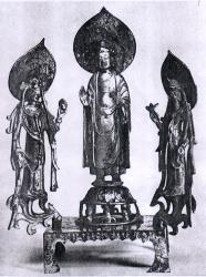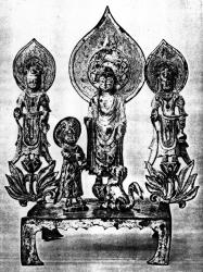 мофа). Неудивительно, что многие из китайских бронзовых алтарей, датирующихся последней третью VI в., содержат изображения будды Амитабхи в сопровождении бодхисаттв Авалокитешвары и Махастхамапрапты, символизирующих милосердие и духовную мудрость Амиды соответственно.