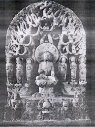 Алтарь из Сиани тоже точно датирован 584-м годом благодаря сохранившейся посвятительной надписи, в которой указано имя и социальное положение донатора – генерал Дунцинь, помощник правителя уезда Уцян (в современной пров. Хэбэй) [12, № 160]. Надпись называет имя главного персонажа сцены предстояния – это будда