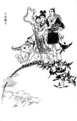 По одной из ср.-век. версий легенды о Пастухе (Ню-лан) и Ткачихе (Чжи-нюй), Пастух, следуя совету своей коровы, выкрал Ткачиху, когда та вместе со своими сестрами купалась в лесном озере. Они поженились, у них родилось двое детей.