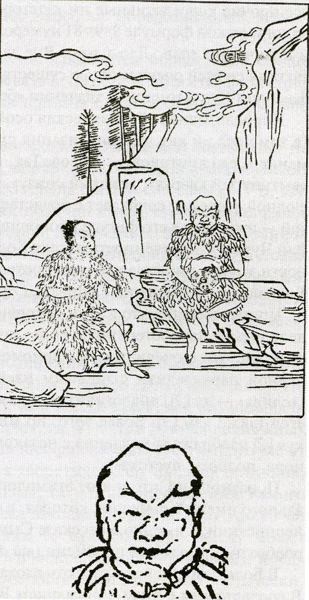 Очевидно, что и Сыма Цянь, и Ван Чун неслучайно использовали столь изощренные выражения для описания имевшейся на голове Конфуция не просто выпуклости и не просто вмятины, а вмятины с выпуклыми краями. Б.Л. Рифтин в своей содержательной книге «От мифа к роману» (1979) обратил внимание на подобный тип головы и даже привел его изображение, но только в связи с мифическими персонажами, а не по отношению к Конфуцию. Он цитирует датируемое рубежом н.э. описание мифического государя Чжуань-сюя как обладателя «головы с канавкой» (цюй тоу) и связывает его с характерной для иллюстраций XVIII–XIX вв. традиционной манерой изображения всех основных первопредков (Пань-гу, Суй-жэнь, Шэнь-нун, Фу-си), некоторых их помощников и прочих мифических государей «со странной головой, как бы разделенной посредине ложбинкой». Рис. 1. Фу-сиРис. 1. Фу-сиВ книге воспроизведено соответствующее изображение Фу-си (см. рис. 1), особенность облика которого гипотетически объясняется как зооморфный атавизм, а именно редуцированная рогатость. Но это объяснение не распространяется на прочих персонажей, отличающихся данным свойством, которое сам автор предпочитает называть «странным».