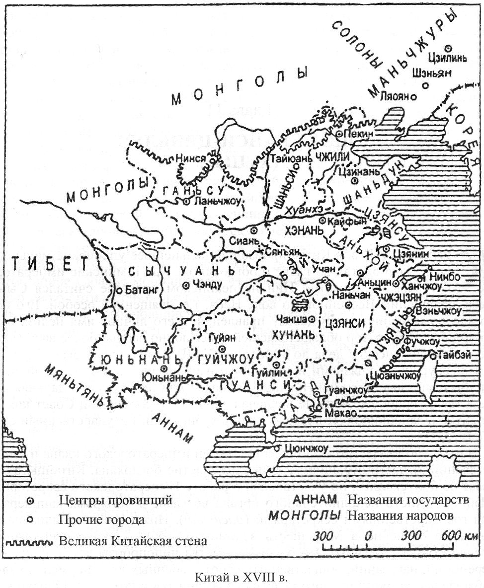 Все бы шло своим чередом, если бы Китай продолжал развиваться автономно и в замкнуто-изолированном географическом пространстве. Однако именно к этому времени страны Западной Европы сделали огромный рывок по пути динамичной капиталистической эволюции. Китай же, вместе с рядом стран Востока, попал в исторический тупик, оказавшись обществом, в недрах которого было трудно появиться и вызреть под спудом традиционных укладов новым капиталистическим отношениям. В конечном счете по уровню развития Китай сильно отставал от передовых стран Запада. Конец XVIII – первая половина XIX в. стали переломным этапом в постепенном превращении маньчжуро-китайской Цинской империи в полуколонию западноевропейского и американского капитала.