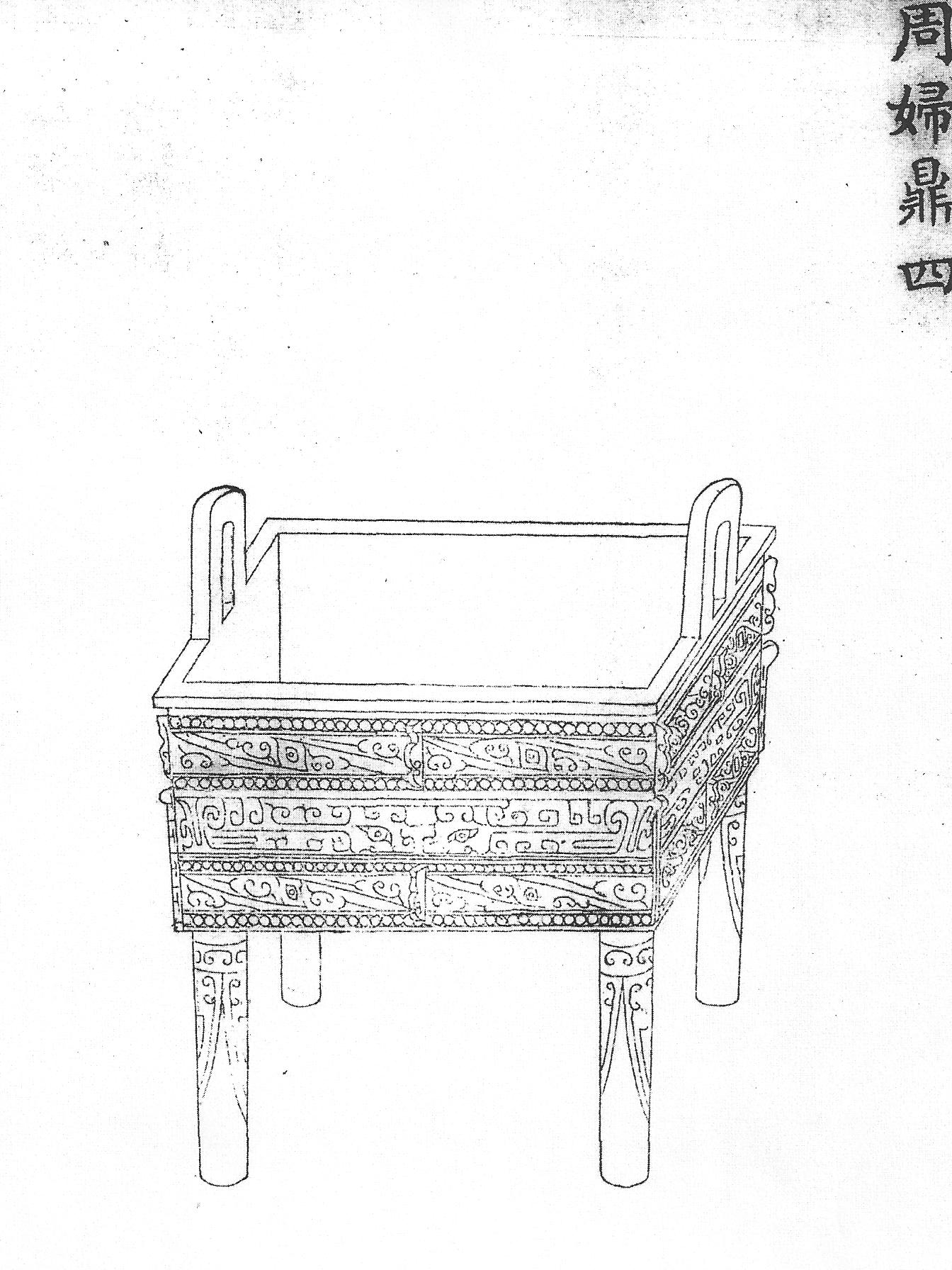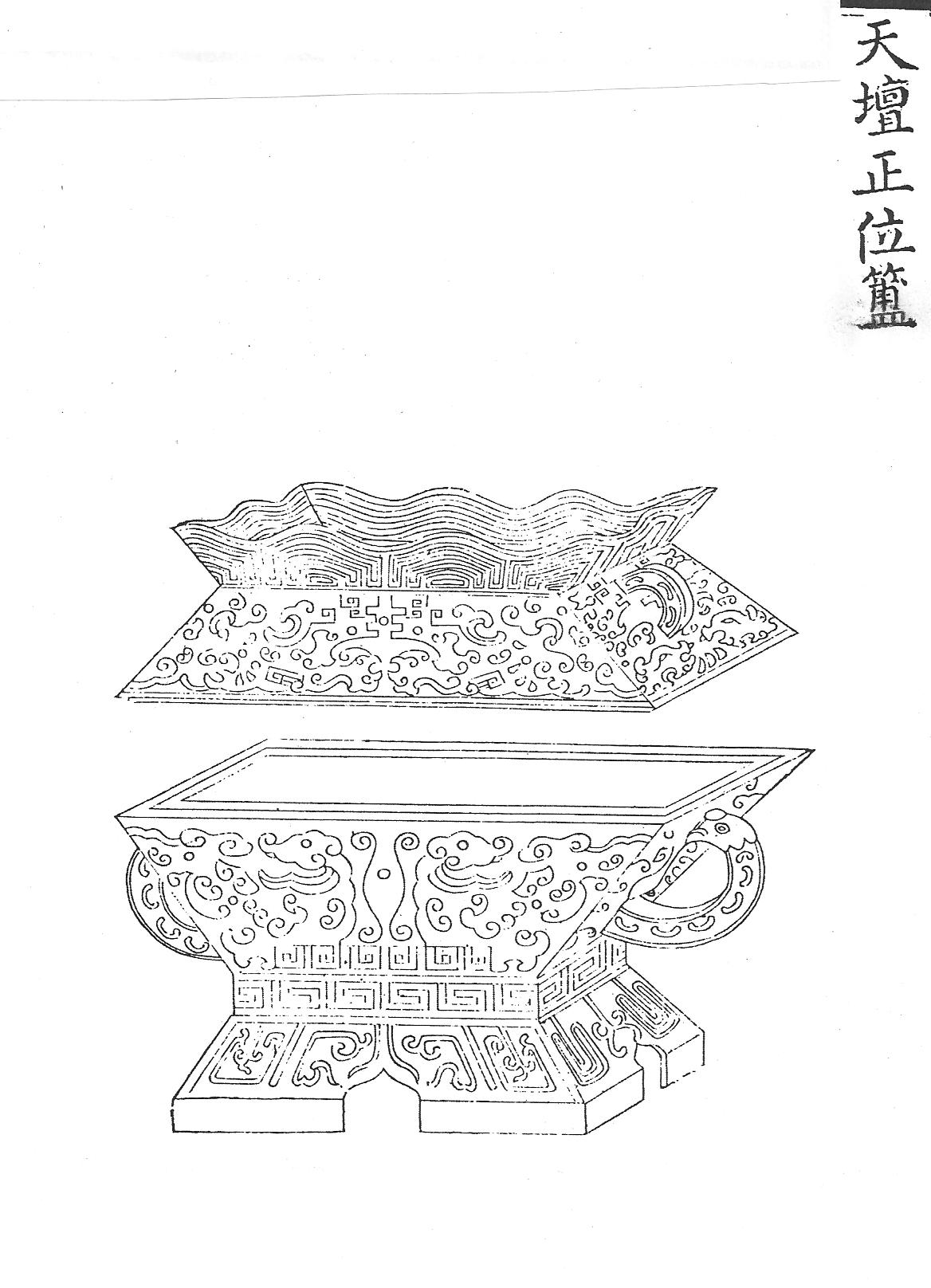 Фу – сосуд четырехгранной формы, завершается крышкой, аналогичной по виду и размеру его нижней части (Ил.3, см.: [158, т. 1, с. 5]). Ил.3. Ритуальный сосуд фу для жертвоприношений в храме Неба Тяньтань. Гравюра сборника Хуанчао лици туши [158, т.1, с.5].