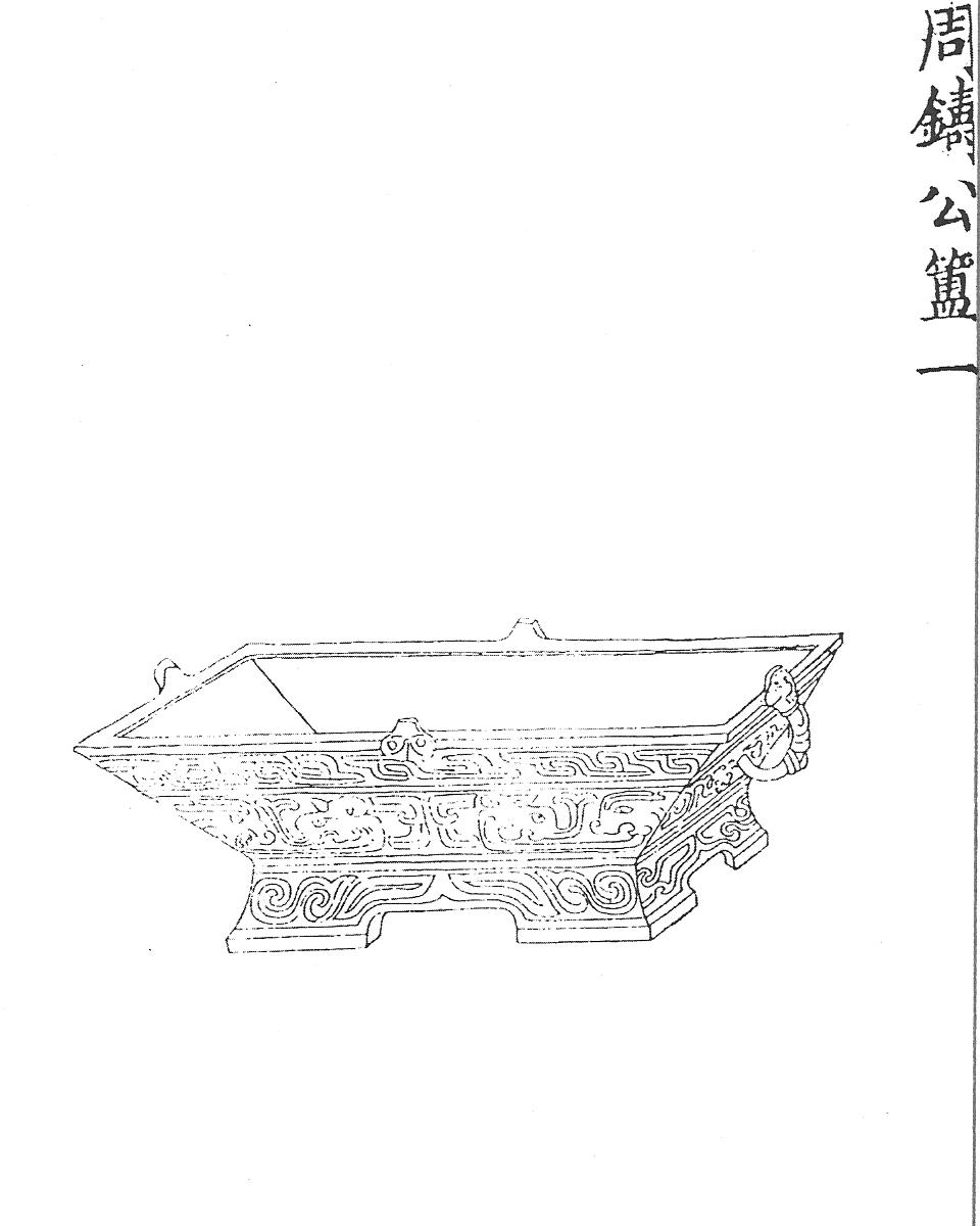 В XVIII столетии была осуществлена каталогизация императорских собраний. Переиздание некоторых составленных тогда каталогов относится к периоду Гуансюй (1875-1908). Вышедший в Шанхае (1889) Циньдин Сицин гуцзянь 欽定西清古鋻 (Высочайше утвержденный каталог собрания древностей /кабинета/ Сицин) представляется самым большим по объему цинским каталогом дворцовой коллекции древней бронзы <18>. Он был подготовлен, как следует из предисловия, составленного лично царствующим императором (по указу от четырнадцатого года правления Цяньлун, 1749) большим коллективом ученых под руководством чиновников в ранге шаншу по имени Лян Шичжэн, Цзян Пу, Ван Юдунь <19>. Порученный их заботам каталог, в соответствии с замыслом Цяньлуна, следовал образцу сунских каталогов Каогу ту 考古圖 (Иллюстрированное /собрание/ древностей, 1092) и Богуту лу 博古圖錄 (Иллюстрированный каталог / собрания / древностей)[1]. Заказ, как говорится в предисловии к изданию, преследовал цель, чтобы подданные получили достойное их занятие и не разменивались на низменные развлечения, приличествующие лишь простому народу, поскольку изучение антиков побуждает размышлять о древних временах на досуге, в период мира и процветания империи [167, т. 1, предисловие].