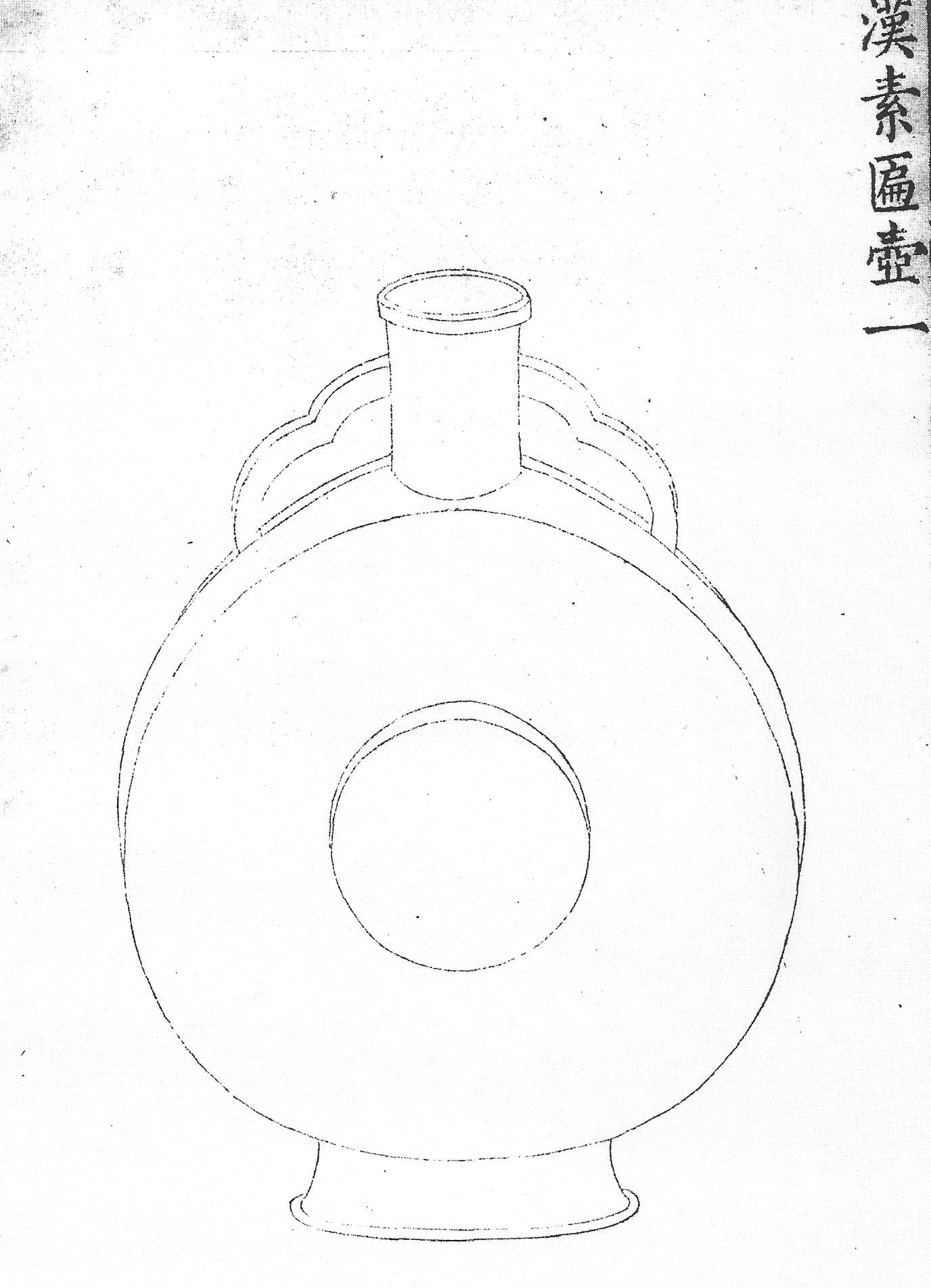 Ил.42. Бронзовая фляга ху. Эпоха Хань. Гравюра каталога Циньдин Сицин гуцзянь [167, т. 22, c. 26].Внимание к «ханьским» формам в начале маньчжурского правления было, вероятно, связано с некоторой инерцией в производстве клуазонне (Ил.42-44). В собрании Олдри представлена ваза из металла и перегородчатой эмали, аналогичная сосуду ху с зооморфными скульптурными ножками из каталога дворцовой коллекции [167, т. 22, с. 9]. Опубликовавшие эту вазу Х. Бринкер и А. Лутц датируют ее концом минского времени, первой половиной XVII века [187, № 127]. Древние орнаменты здесь заменены изображениями лозы с головками стилизованных лотосов, окружающих тулово предмета взамен геометрических фризов ханьского оригинала. Унаследованный от минского художественного металла и эмалей («программный» для них) интерес к ханьским формам оставался высоким на протяжении большей части правления Канси, когда (около 1693) были восстановлены придворные эмалевые мастерские. В начале правления цинской династии возникали повторения особой разновидности ханьских винных контейнеров ху с гладким туловом и парой зооморфных ручек с подвесными кольцами си [167, т.21, с. 19; 187, № 157]. Представляется закономерным, что обращение к «ханьскому» типу вещей, в значительной мере утраченное в течение XVIII столетия, возрождается в цинских клуазонне после Опиумных войн, что (как и в минское время) было связано с ростом чувства национального самосознания, с одной стороны, а также коммерческим спросом на копии перегородчатых эмалей в «минском стиле», с другой стороны.