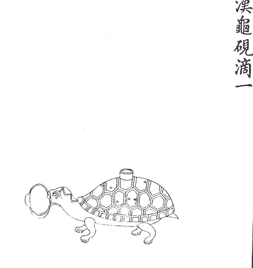Ил.45. Бронзовая капельница в виде черепахи. Эпоха Хань. Гравюра каталога Циньдин Сицин гуцзянь [167, т. 38, c. 31].В перегородчатых эмалях с марками правления Цяньлун, возможно вышедших из столичных мастерских, представлены некоторые варианты капельниц для разведения туши. Среди них есть точные копии и приблизительные стилизации ранних бронзовых вещей из дворцовой коллекции [167, т. 38, с. 33, 34; 187, № 326]. Примером буквального повторения ханьской скульптурной композиции (Ил.45) может служить миниатюрная капельница в виде черепахи, созданная не ранее середины правления Цяньлун (Ил.46). В этом произведении из золоченого металла и перегородчатой эмали образ черепахи (как древнего символа Севера), будучи дополнен фигуркой змеи, становится даже более «мифологизированным» по сравнению с ханьским оригиналом, обозначая общую тенденцию в культуре эры Цяньлун.