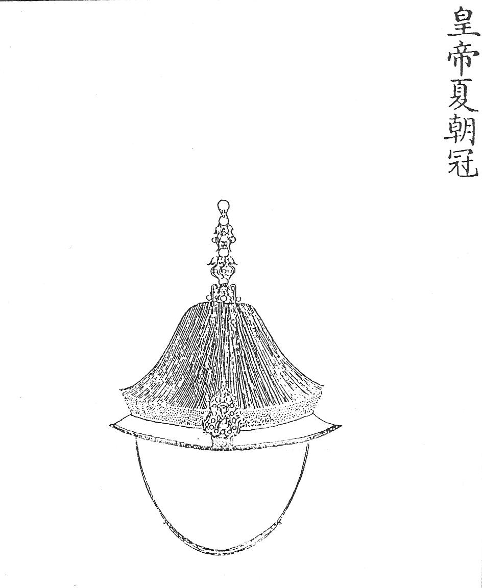 Ил.93. Летний ритуальный головной убор чаогуань императора с набором ранговых украшений (вид спереди). Гравюра сборника Хуанчао лици туши [158, т. 4].
