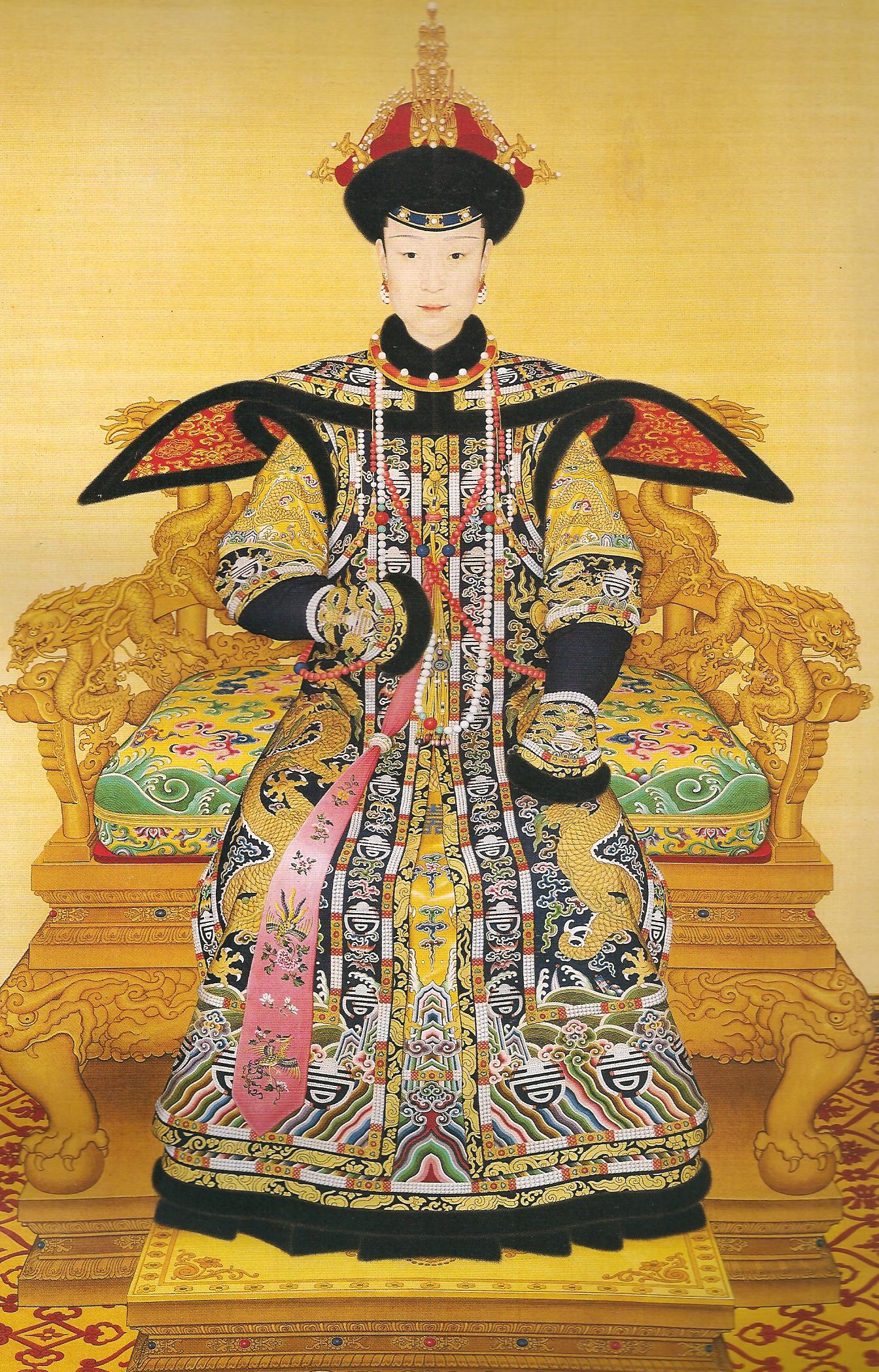 В головных уборах дам, начиная с жены императорского сына (хуанцзы фуцзинь), фениксы заменялись жемчужно-золотыми павлинами –цзинькунцяо. Характерно, что фениксы, уже в ханьское время ставшие в Китае символом императрицы, в минский период сохранились в композиции головных уборов августейших персон женского пола, тогда как золотые фазаны – цзиньди и павлины – цзинькунцяо служили показателями рангов для минских аристократок [170, с. 415-423]. В этом отношении закон периода Цяньлун всего лишь закреплял сложившуюся традицию.
