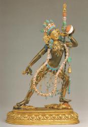 Ил.112. Скульптурное изображение дакини. Металл, литье, чеканка, гравировка, золочение, инкрустация камнем и костью. Тибет, период Цин. Музей Норбулинка, Лхаса [282, с. 32].