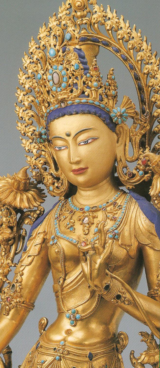 Ил.113. Скульптурное изображение Зеленой тары (фрагмент). Медь, литье, чеканка, гравировка, золочение, инкрустация камнем и костью. Тибет, период Цин. Музей Норбулинка, Лхаса [282, с. 35].