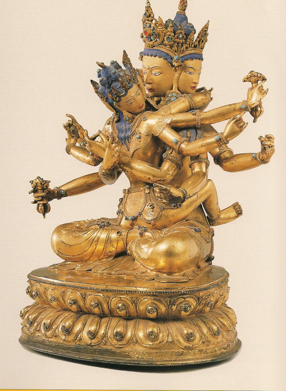 Ил.114. Скульптурное изображение пары божеств в соитии. Медь, литье, чеканка, гравировка, золочение, инкрустация камнем. Тибет, период Цин. Тибетский музей, Лхаса [282, с. 34].