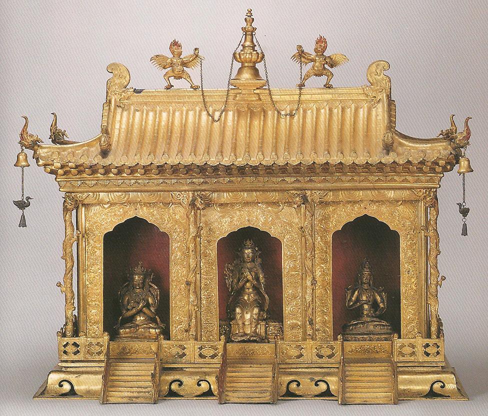 Ил.119. Алтарь в виде модели храма. Медь, чеканка, гравировка, золочение. Тибет, период Цин. Музей Норбулинка, Лхаса [282, с. 63].