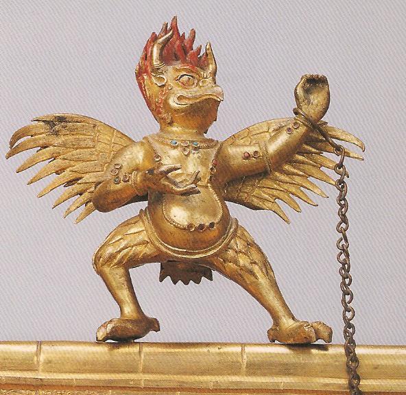 Ил.119. Фрагмент декора алтаря – модели храма в виде скульптуры гаруды. Медь, чеканка, гравировка, золочение. Тибет, период Цин. Музей Норбулинка, Лхаса [282, с. 63].