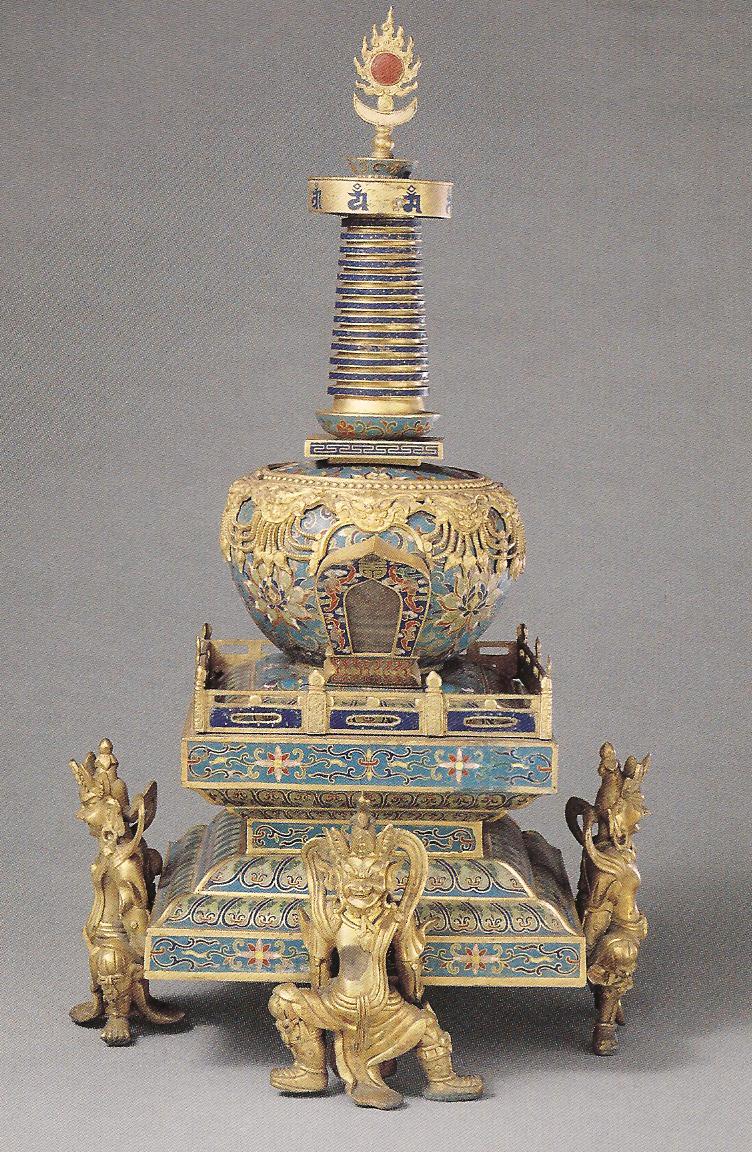 Ил.122. Ступа-реликварий. Металл, перегородчатая эмаль, золочение. Китай, период Цяньлун. Музей Гугун, Пекин [160, с. 149].
