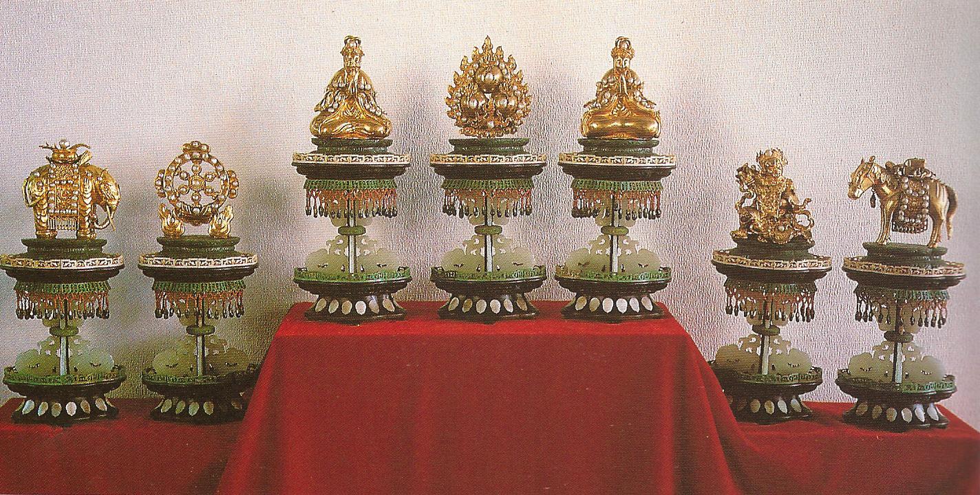 Ил.125. Алтарный набор цибао – «семь [буддийских] сокровищ». Золото, жемчуг, цветные камни, чеканка, гравировка. Китай, конец XVIII в. Музей Гугун, Пекин [162, с. 116].