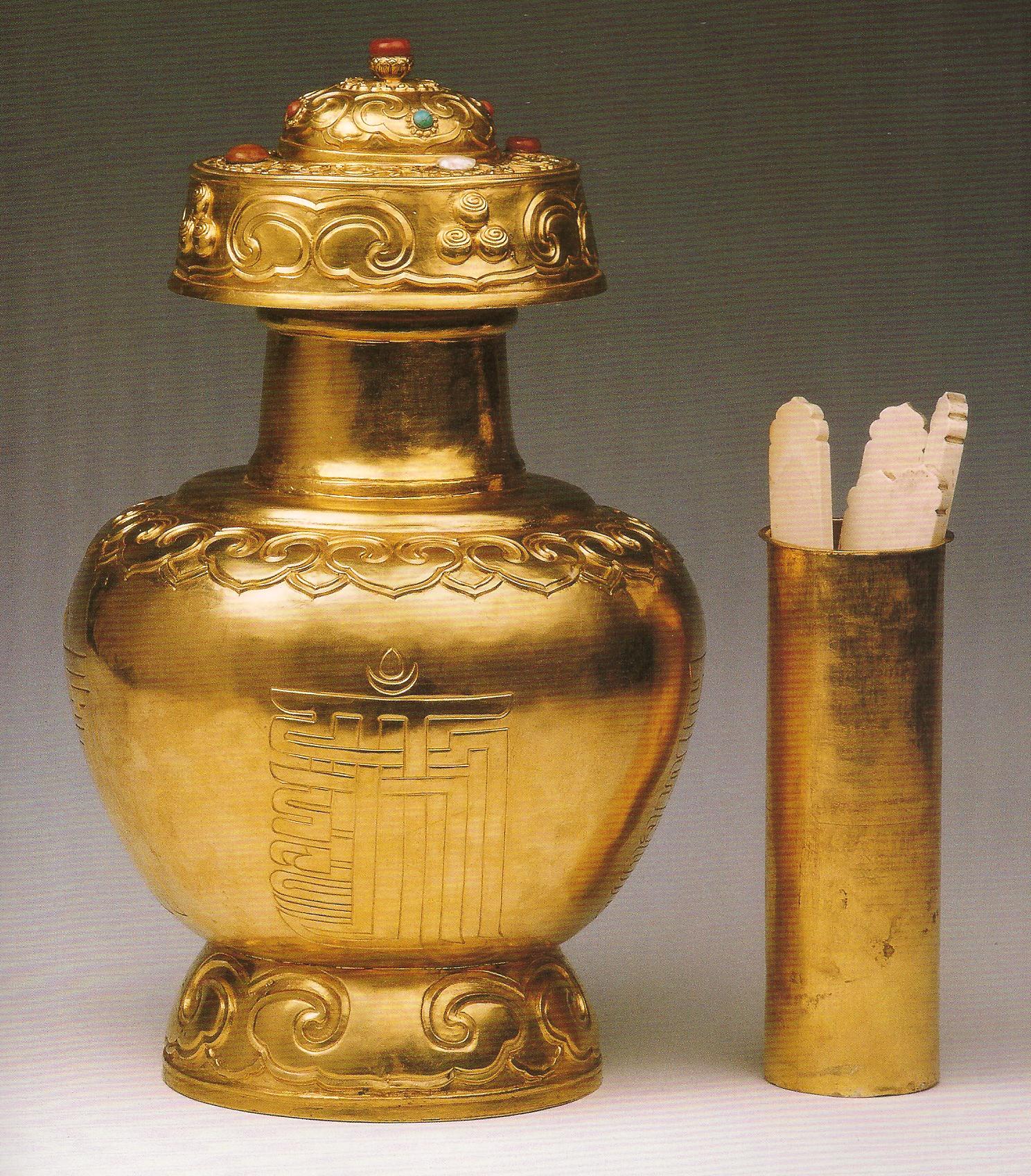 Ваза и пластины для жеребьевки при выборе далай-ламы