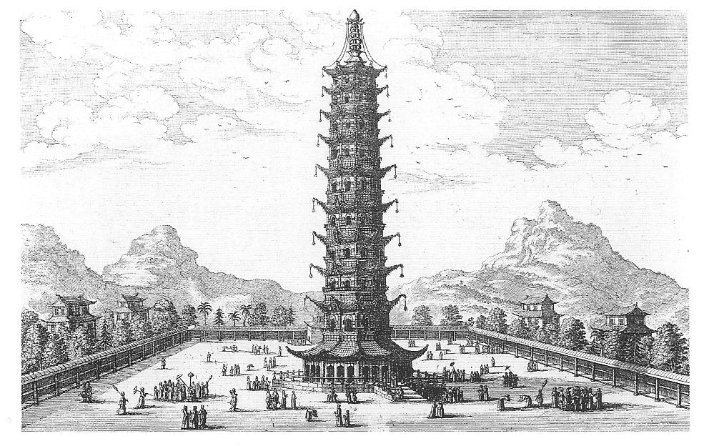 Ил.129. «Фарфоровая пагода» в Нанкине. Гравюра на меди. Аугсбург, 1688 [39, с. 34].