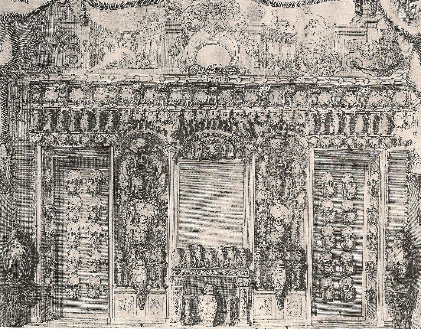 Ил.132. М. Мериан. «Фарфоровый кабинет» в замке Шарлоттенбург. Гравюра на меди из серии «Театр Европы XVI-XVII веков». Франкфурт, 1717-1718 [206, с. 95, ил.92].