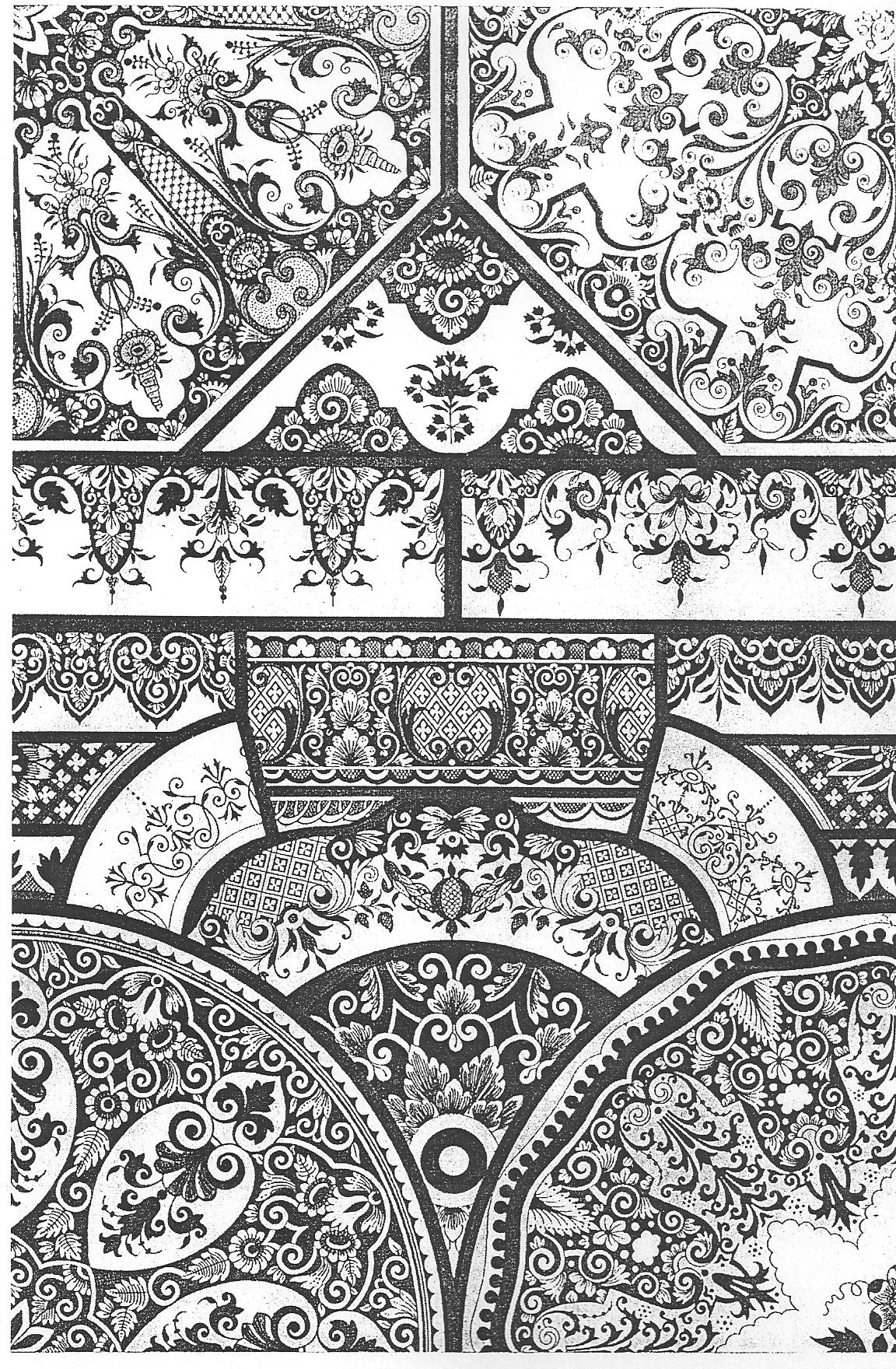 Ил.142. Декоративные мотивы росписи французской керамики, выпускавшейся на Руанской мануфактуре. Середина XVII – первой четверти XVIII вв. [103, табл. 196].