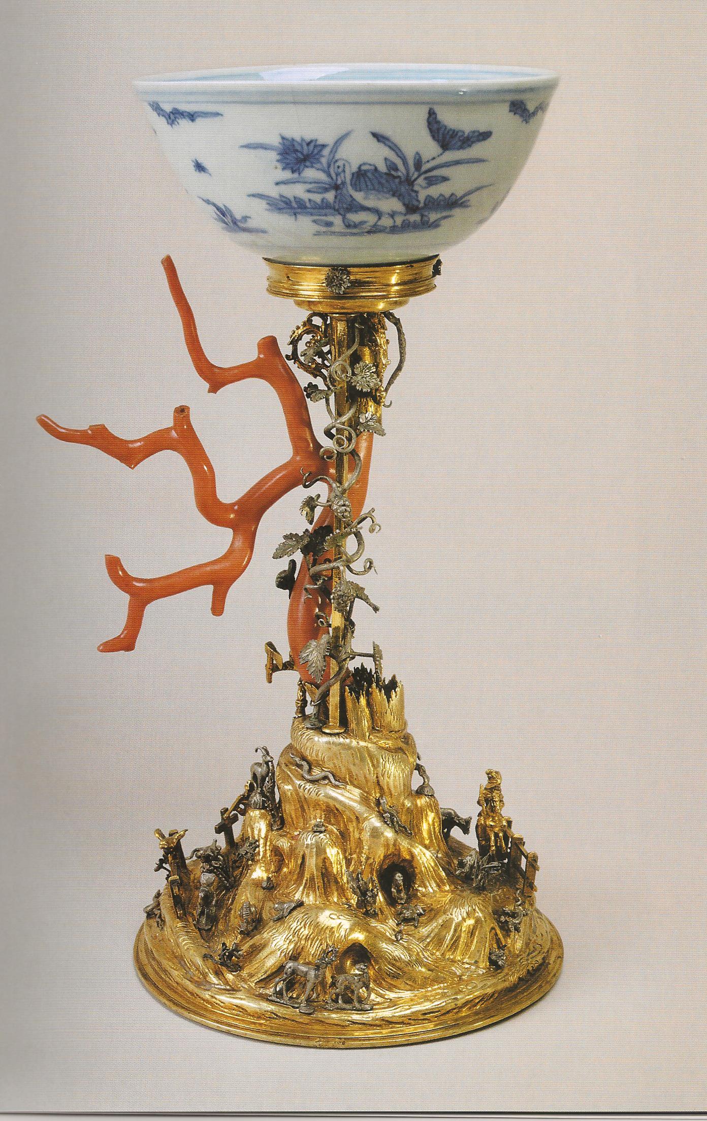 Ил.147. Кубок. Фарфор, коралл, серебро, литье, чеканка, гравировка, золочение. Мастер Иероним Банг. Нюрнберг, 1630. Музеи Московского Кремля [Посольские дары русским царям (каталог выставки). М., 2005, № 82].