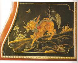 Ил.149. Панель с изображением цилиня (фрагмент отделки шкафа). Дерево, роспись, китайский лак, имитация китайского лака, бронза, золочение. Мастер. Э. Дуара. Франция, первая треть XVIII в. ГЭ, Санкт-Петербург [51, с. 24].